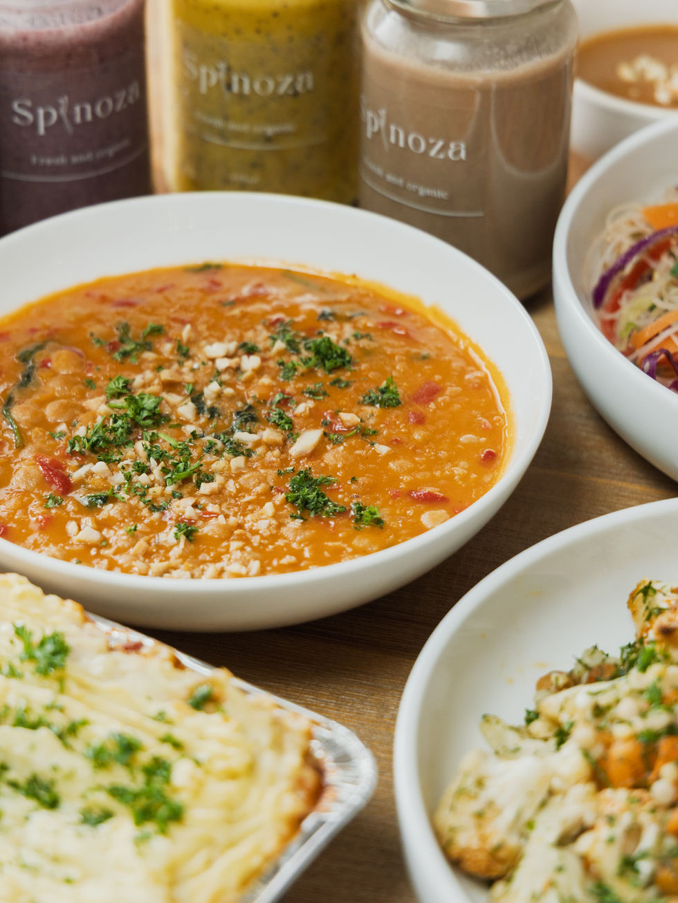 - 4×vegetarian dinners, delivered fresh and ready to enjoy - whole food, plant-based meals crafted by hand from seasonal ingredients